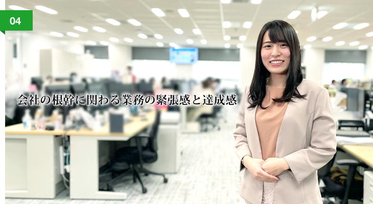 新商品の導入など、会社の重要事項を決定する際には取締役会を開催し、株主5社への説明、承認を得る必要があります。限られた時間の中で分かりやすく正確に伝わる説明資料の作成や、株主に対するスムーズな段取りの調整が、社長室の腕の見せ所です。資料作成の鍛錬になることはもちろん、説明の場に同席し、経営層同士の対話や、代表執行役社長の話運びを間近で学ぶことができ、大変刺激になります。社外関係者を相手に失敗が許されない緊張感の中、スケジュールを逆算しながら社内外調整をこなし、無事に開催できた時はとても達成感があります。年齢に関係なく任される、会社の根幹に関わる大きな業務にやりがいを感じています。